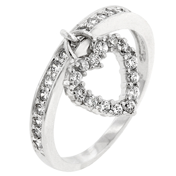 White Gold Rhodium Bonded Heart Charm Ring with Clear CZ Accents in Silvertone. Heart Charming is truly stunning. This ring charm can be your sole reminder of that special someone in your life. White Gold Rhodium Bond is achieved using an electroplating process that coats the item with heavy layers of rhodium a close cousin of platinum that costs three times as much which gives our jewelry a platinum luster. - Base Metal: Lead Free Alloy