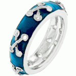 White Gold Rhodium Bonded Navy Blue Enamel with Milligrain Shoelace Design Eternity Band in Silvertone. Milligrain shoelace Eternity Band is a unique design for anyone to wear. Cool navy blue enamel overlay and silver tones are combined wonderfully. The milligrain addition is fun looking as well. Just for you. White Gold Rhodium Bond is achieved using an electroplating process that coats the item with heavy layers of rhodium, a close cousin of platinum that costs three times as much, which gives our jewelry a platinum luster. - Base Metal: Lead Free Alloy