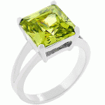 Princess Cut Peridot Crystal Solitaire Ring in Rhodium.. This ring displays an eight carat peridot solitaire on the shoulders of a simplistic design with silver tone. Relax when you put this ring on. It is perfect for an evening on the town or a day at the beach. - Base Metal: Lead Free Alloy