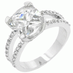 White Gold Rhodium Bonded Cocktail Ring with a 5ct Prong Set Asscher Cut Clear CZ Above a Double Band of Channel Set Round Cut Clear CZ in Silvertone. Like the moon right after sun down this ring is sure to grab attention from it\'s beauty and shine. The unique 5 carat asscher cut clear CZ sits above a double band of round clear CZ and screams \you\'re on top of the world.\" White Gold Rhodium Bond is achieved using an electroplating process that coats the item with heavy layers of rhodium a close cousin of platinum that costs three times as much which gives our jewelry a platinum luster. - Base Metal: Lead Free Alloy