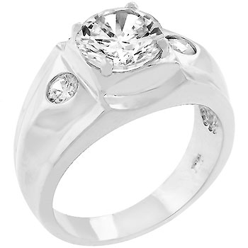 White Gold Rhodium and Matte Rhodium Bonded Three Stone Men\'s Ring in Silvertone. This wonderful man\'s ring is adorned with three stunning CZ in a rhodium and matte rhodium bonded shank. Stunning Triplet features a prong set center stone with two bezel CZ accents. Its look inspires a quiet but confident posterity. Make sure to wear this ring proudly and let it make your statement as a man. Rhodium and Matte Rhodium Bond are achieved using an electroplating process that coats the item with heavy layers of rhodium, a close cousin of platinum that costs three times as much, which gives the item a platinum and matted luster. - Base Metal: Lead Free Alloy