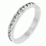 White Gold Rhodium Bonded Stacker Ring with Round Cut Clear CZ in a Channel Setting in Silvertone. This petite eternity band comes in many different styles for you to choose from. White Gold Rhodium Bond is achieved using an electroplating process that coats the item with heavy layers of rhodium a close cousin of platinum that costs three times as much which gives our jewelry a platinum luster. - Base Metal: Lead Free Alloy