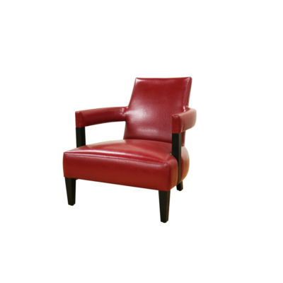 Product Code : A-732-067 This bright, bold contemporary gem of a chair is a lively way to brighten up a home or commercial space. The Kenorah Club Chair features blocky, contemporary design elements and shiny red bonded leather. Inside is a solid wood frame as well as dense foam cushioning. Completing the look are black wood armrest and legs with non-marking feet. The accent chair is fully assembled. - Contemporary accent chair
