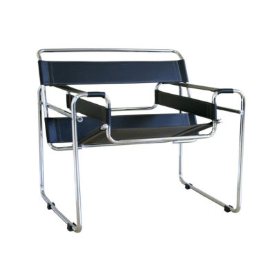 Product Code : ALC-3001 Black This is the perfect unique accent chair that you have been looking for. Classic design brings modern feel that will complement any seating area. Chair constructed with sturdy steel frame. Full bonded leather seat, back, and sides that are connected with the chromed steel frame will pique your interest with its unusual design and look. Add some zest with this accent chair to that unique room that you have always desired. -Comes with floor proctors