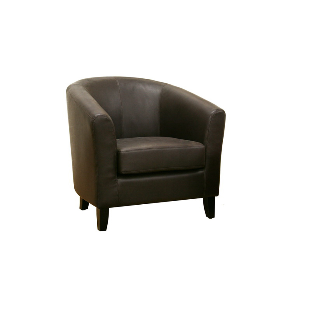 Product Code  : A-52-206Sophisticated and contemporary, this club chair with curved back is an essential piece for a room with a classic look. Built upon a wooden frame, the chair is completed with comfortable foam padding and dark brown bonded leather. The legs are black lacquered wood and the seat cushion is removable. Some assembly is required.  -Chair measures 29.5 W x 27.5 D x 32 H.