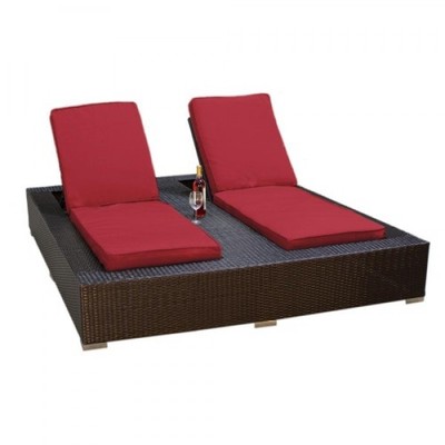 Tk Classics-Jamaica Outdoor Wicker Patio Double Chaise Lounge Henna Spice