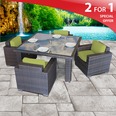 All Sets Come in a Beautiful Neutral UV Protected Outdoor Fabric with Espresso Wicker.
