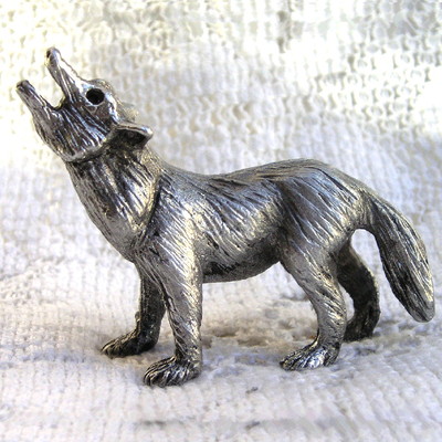 This item is a miniature "Genuine Pewter Coyote Animal Figurine". It is a brand new made in the U.S.A. decorative curio cabinet collectible. It is composed of 92%+ tin metal as required for 'Genuine Pewter' quality standards. It weighs 1.8 ounces, stands 1-3/4 inches tall, and is 2-1/4 inches long by 3/4 inches wide when sitting on the shelf. The item has a silvery textured highly detailed body and it appears that the coyote is howling at the moon. The eyes are black enamel, and the antique satin look of the figurine reveals the quality of the craftsmanship. This product is part of a limited collection by the same artist. Shipping, Insurance, and Signature Confirmation are additional to the final bid price. The buyer pays shipping, handling, and insurance. Payment is via PayPal Only. No Returns Or Refunds.JANUARY 1st, 2013Your Click Thru Tells Us What To Do.