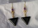 Sterling Vermeil Amethyst Onyx Filigree Dangle Earrings