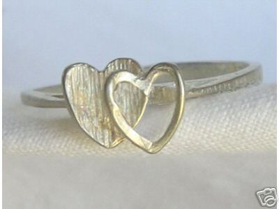 This item is a brand new “Sterling Silver Open Close Heart Ring” made in the U.S.A. It is designed as a solid sterling silver cast shank with a simple open 'Twin Heart' design. The face of the ring is 3/8” from top to bottom and 3/4" in width, it has a thin style shank that tapers to 1/8" wide under the finger. The weight of this ring is approximately 1.55 grams of metal, and it is a high quality sterling silver casting. This item is available in ring size 7-1/2 only. This ring may be altered, adjusted or sized; it is very shiny and bright..."a very high end show venue display quality finish". In addition, this item has been sterilized with jeweler's solution and sealed in a plastic bag. This first class product came from a designer showcase as an original concept and will retain its' brilliance for a long time.