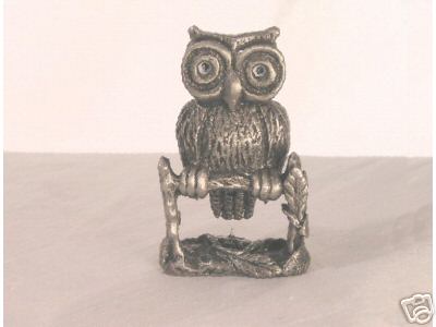 Genuine Pewter Animal Figurine- Owl On Fence