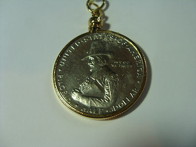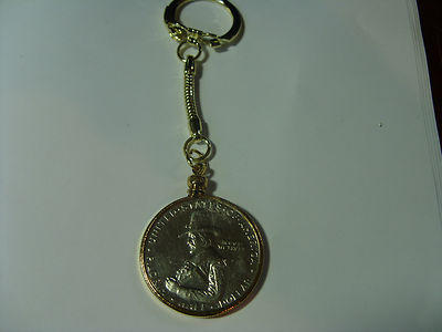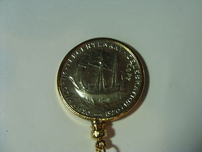 Very Nice Gold Keychain A real Beauty with a 1620-1920 Pilgrim Half Dollar Copy in Bezel. Total Length is about 4 1/2 inches Not Real Gold Not real Coin .... .Please see picture