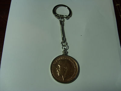 Very Nice Gold Keychain A real Beauty with a 1916 British Penny in Bezel. Total Length is 4 1/2 inches Real Coin Not real Gold .... .Please see picture