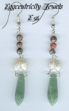 Genuine Green Aventurine Gemstone Daggers, White Russian FW Pearls & African Leopard Jasper Sterling Silver Handcrafted Earrings
