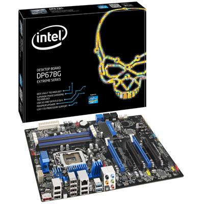 Intel Extreme series Desktop Board DP67BGB3 (single)... ATX, LGA1155 socket, Intel P67 Express Chipset, (4) 240-pin DDR3 1600/1333/1066 MHz DIMM sockets (up to 32GB), Intel High Definition Audio (10-channel), Intel Gigabit LAN, (2) USB 3.0 ports, (14) USB 2.0 ports, (2) Serial ATA 6.0 Gb/s ports, (4) Serial ATA 3.0 Gb/s ports, (1) eSATA external port, (1) IEEE-1394a header, (1) PCIe 2.0 x16 bus (switchable to 2x8 PCIe 2.0 connectors), (3) PCIe 2.0 x1 connectors, (2) PCI conventional bus connectors; RAID 0, 1, 5 & 10. Includes Board, ATX compliant I/O shield, UV SATA cables, Board & back panel I/O layout stickers, Quick reference guide, Intel Express Installer driver & software DVD, Bluetooth/Wi-Fi module, NVIDIA SLI two-way connector, Post code information card.