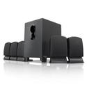 300-Watt 5.1-Channel Home Theater Speaker System Immerse yourself in your movies and music with Coby's 5.1-channel home theater speaker system. Fill your room with 300 watts of surround sound from five 3" satellite speakers and a floor-rattling subwoofer. The integrated amplifer and switch allows you to easily change between two source connections. Independent volume/treble/bass control and magnetic shielding also included.