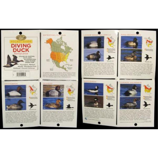 The Complete Hunter Pocket Guide - Diving Duck Identification This pocket guide has color ID photos, in-flight silhouettes, and range maps for Canvasback, Redhead, Bluebill, Ring-Necked Duck, Bufflehead, and Common Goldeneye. It measures 11"" tall and 8.5"" wide (unfolded). ISBN 0-86573-482-8." Case Pack 48