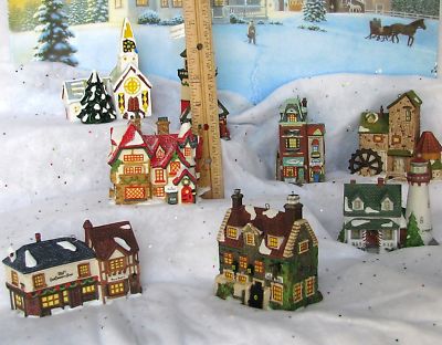 These hanging ornaments produced by Department 56 were produced for only 1 year during the 1990's. They have incredibly minute detail and the small size makes them very desirable to use in the creation of a truly miniature village, taking up far less room than the standard sized Department 56 buildings. They could also be used for grand detail in a model railroad layout, HO Gauge and N Gauge. See photos for examples.