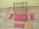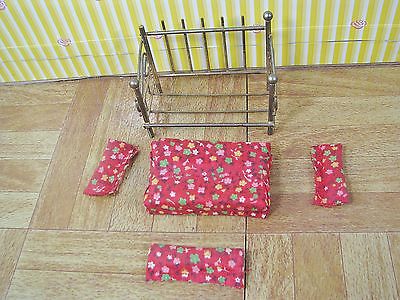 VINTAGE BRASS DOLLHOUSE MINIATURE DAYBED WITH MATTRESS, 3 PILLOWS