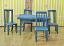 5 PIECE WOOD DOLLHOUSE MINIATURE SET OF TABLE, 4 CHAIRS, BLUE STAIN