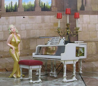 A 3 branch candelabra which would look great on a table, the mantle or the Grand Piano!#4439-6, the Royal Candelabra stands 2-½” tall with it’s original box.Made of brass and plastic, there are even “crystal”bobeche’s at the base of the candles.It is in excellent, near mint condition with little sign of play, remarkable after 50 years!The box is in good condition.The detail on the Petite Princess Fantasy Furniture is amazing, very rich and would make a wonderful addition to your miniature furniture collection or dollhouse. See the photos for