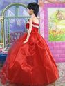 Fashions fit for a Queen, this stunning floor length evening gown is just the thing for that gala event, party, charity ball or other formal or ultra formal affair. Fiery red satin with red lace bodice and white trims that give a full flair to this lovely creation. The decorative chiffon overlay with floral motif on the front gives an elegant and floating appearance to the gown. Certain to make any Barbie sized fashion doll into an irresistible sight for Ken to behold. Maybe GI Joe as well! Brand new In never played with or displayed condition.