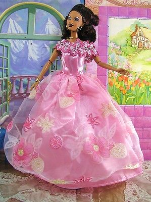 BARBIE SIZED EVENING GOWN FULL LENGTH ULTRA FORMAL PINK FLORAL NEW #67