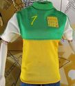 A 2 piece set with a green, yellow and white Mattel Barbie F.I.F.A. Womens World Cup Soccer shirt and pair of denim look slacks. In good used condition.
