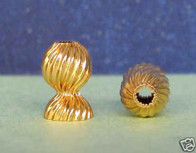 These are charming little pieces plated in Hamilton Gold, that could be used singly or doubled as a spacer bead or focal piece on a necklace or bracelet, as a component on a unique, one of a kind Egg Stand, an accent on a theatrical costume or part of a belly dancing outfit! Measures 3/8” or about 10mm. Could also be used along with dollhouse miniature decorating as a small vessel or container or as part of a dollhouse sized lamp. Sold by the dozen (12).