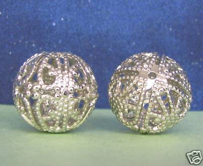EsA beautiful and very ornate filigree ball measuring ¾” in diameter, about 19mm. A perfect piece to use in necklaces or bracelets, as an integral component of a unique, one of a kind Egg Stand or as a dazzling addition to a theatrical costume or belly dancers regalia. Sold in Groups of 2. *********************************************************
