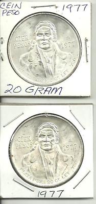 TWO (2 ) 1977 SILVER MORALES 100 PESOS BU