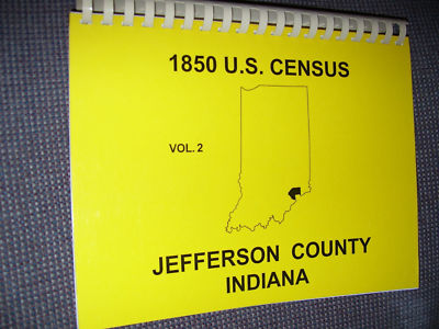 1850 U.S. CENSUS OF JEFFERSON COUNTY, INDIANA VOL. 2.SPIRAL BOUND SOFTCOVER BOOK. THICK BOOK.CONDITION: VERY GOOD, LIGHT WEAR.