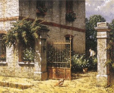 Hallmark has gone full circle in his development as an artist. After years of painting nostalgic Western scenes, in the mid-nineties, he returned to his roots – architecture. Old weathered adobe and stucco buildings, as well as Mexican and European street markets, are infused with a dramatic play of light and shadow. His love of subject is obvious in the delineation of stucco walls, tile roofs, and long shadows in his unique painterly style. He is now completing new work from recent trips to Mexico, France and Spain. Hallmark and his wife, Lisa, live in Meridian, Texas, only about an hour from his birthplace. His picturesque home and studio overlook the Bosque River Valley.