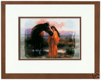 It is a 5 x 7 print double matted into an 8 x 10 all wood frame. The out side mat is an eggshell or off white with a rust colored inner mat.