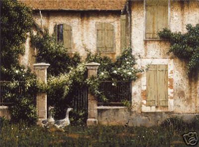 Hallmark has gone full circle in his development as an artist. After years of painting nostalgic Western scenes, in the mid-nineties, he returned to his roots – architecture. Old weathered adobe and stucco buildings, as well as Mexican and European street markets, are infused with a dramatic play of light and shadow. His love of subject is obvious in the delineation of stucco walls, tile roofs, and long shadows in his unique painterly style. He is now completing new work from recent trips to Mexico, France and Spain. Hallmark and his wife, Lisa, live in Meridian, Texas, only about an hour from his birthplace. His picturesque home and studio overlook the Bosque River Valley.