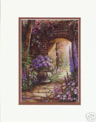 In Sandra Bergeron's paintings, one is invited into her nostalgic, country scenes by a winding path, or an open gate which draws the viewer into the idyllic settings. Her charming old cottages and brightly blooming gardens are richly imaginary. "I paint scenes that I hope people will identify with," says the artist. "Perhaps a memory of something from their past, or someplace they've visited, or simply someplace they'd like to go." Bergeron received several years of formal art training in the east and was greatly influenced by the Old Masters, particularly Rembrandt. Her use of dark backgrounds with illuminated subjects led her to experiment with light and its dramatic effects in her paintings. Bergeron began by painting more contemporary landscapes and was later intrigued to recreate the pastoral scenes inspired by her English and Scottish ancestry.