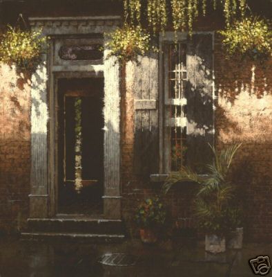 Hallmark has gone full circle in his development as an artist. After years of painting nostalgic Western scenes, in the mid-nineties, he returned to his roots – architecture. Old weathered adobe and stucco buildings, as well as Mexican and European street markets, are infused with a dramatic play of light and shadow. His love of subject is obvious in the delineation of stucco walls, tile roofs, and long shadows in his unique painterly style. He is now completing new work from recent trips to Mexico, France and Spain. Hallmark and his wife, Lisa, live in Meridian, Texas, only about an hour from his birthplace. His picturesque home and studio overlook the Bosque River Valley.