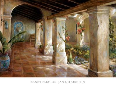 A lifelong fascination with shapes, especially with those made by shadows, is apparent in most of Jan McLaughlin's alkyd paintings on canvas. Sparkling sunlight and the resulting shadow patterns are a recurring theme in much of her work.