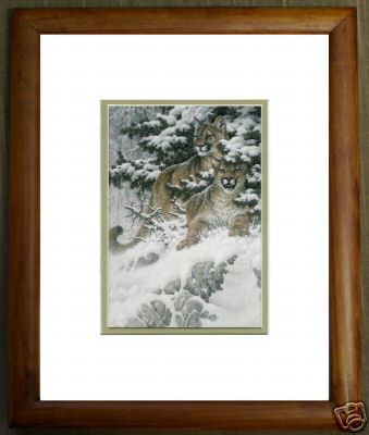 Snow Cougars by Larry Fanning Wildlife Print Framed