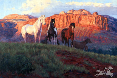 Before leaving Albuquerque, Goldrick received informal instruction from Wilson Hurley and Arthur Sussman, among others. Continuing to exhibit in New Mexico shows and galleries, she has won numerous awards and her works now hang in collections nationwide. She was recently featured in Art of the West magazine and Western Art Digest. Her recent Western Horseman cover attests to her in-depth study of American Indian history, particularly of her neighbors, the Southern and Mountain Utes and Jicarilla Apaches. Goldrick works primarily in oils and watercolors. .