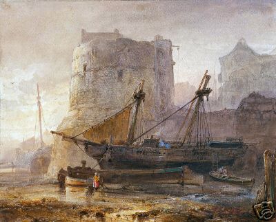 Ships in a French harbour at low tide by Wijnandus Johanne Joseph Nuyen, 1836, Old Masters Print