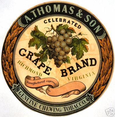 Grape Brand Chewing Tobacco 1800s Vintage Label Print