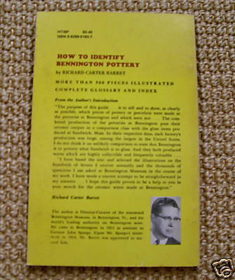• DISCUSSION: “The purpose of this guide…is to tell and to show…which pieces of pottery or porcelain were made at Bennington and which were not…. The combined production of the potteries at Bennington puts their ceramic output in a comparison class with the glass items produced at Sandwich, Mass. In their respective days, each factory's production was…among the largest in the United States…. I have based the text and selected the illustrations on the hundreds of letters I receive annually and the thousands of questions I am asked at Bennington Museum in the course of my work. I…hope this guide proves to be a help to you in your search for the ceramic wares made at Bennington.” 5.3” x 8.4”, 72 pages.