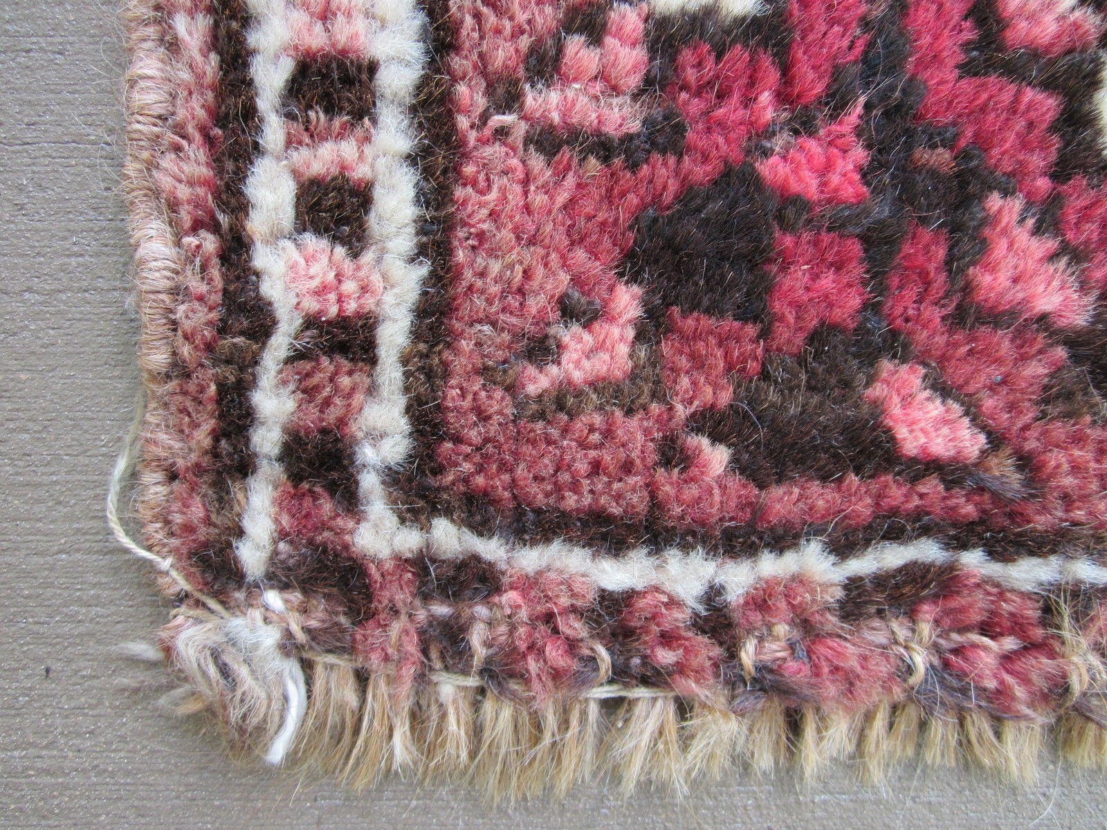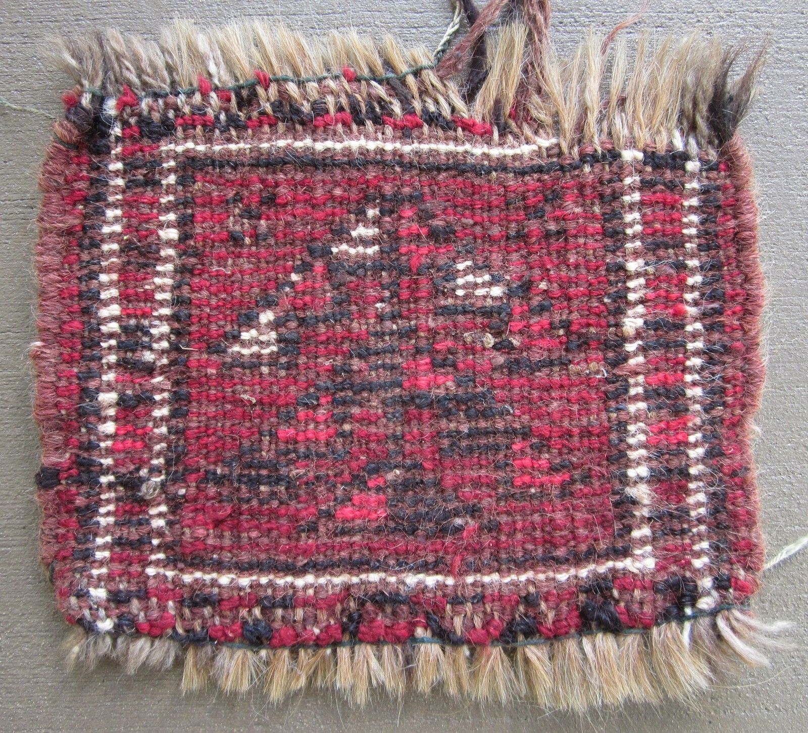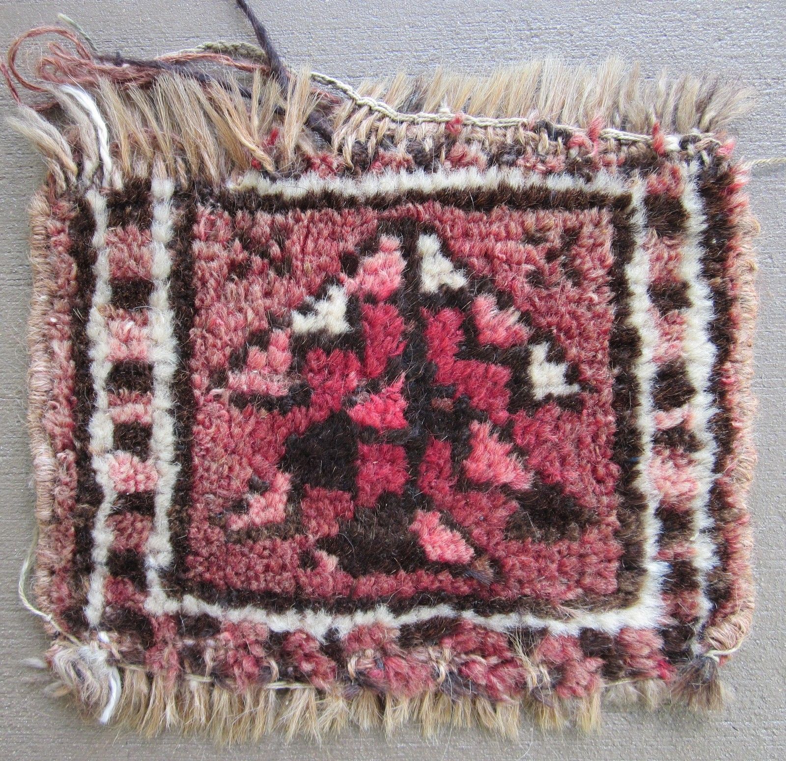 Small Antique Apprentice Piece Rug Carpet Wool Knotted Brown Red Colors 12" x11"