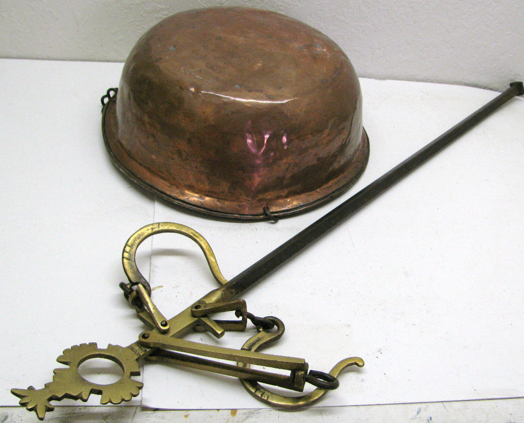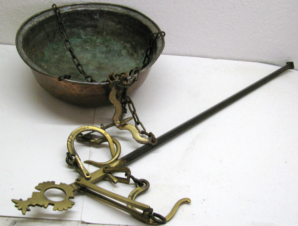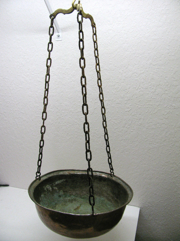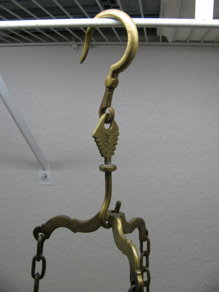 Stunning Huge Antique Brass Cast Iron Balance Scale Weight Pan No weights