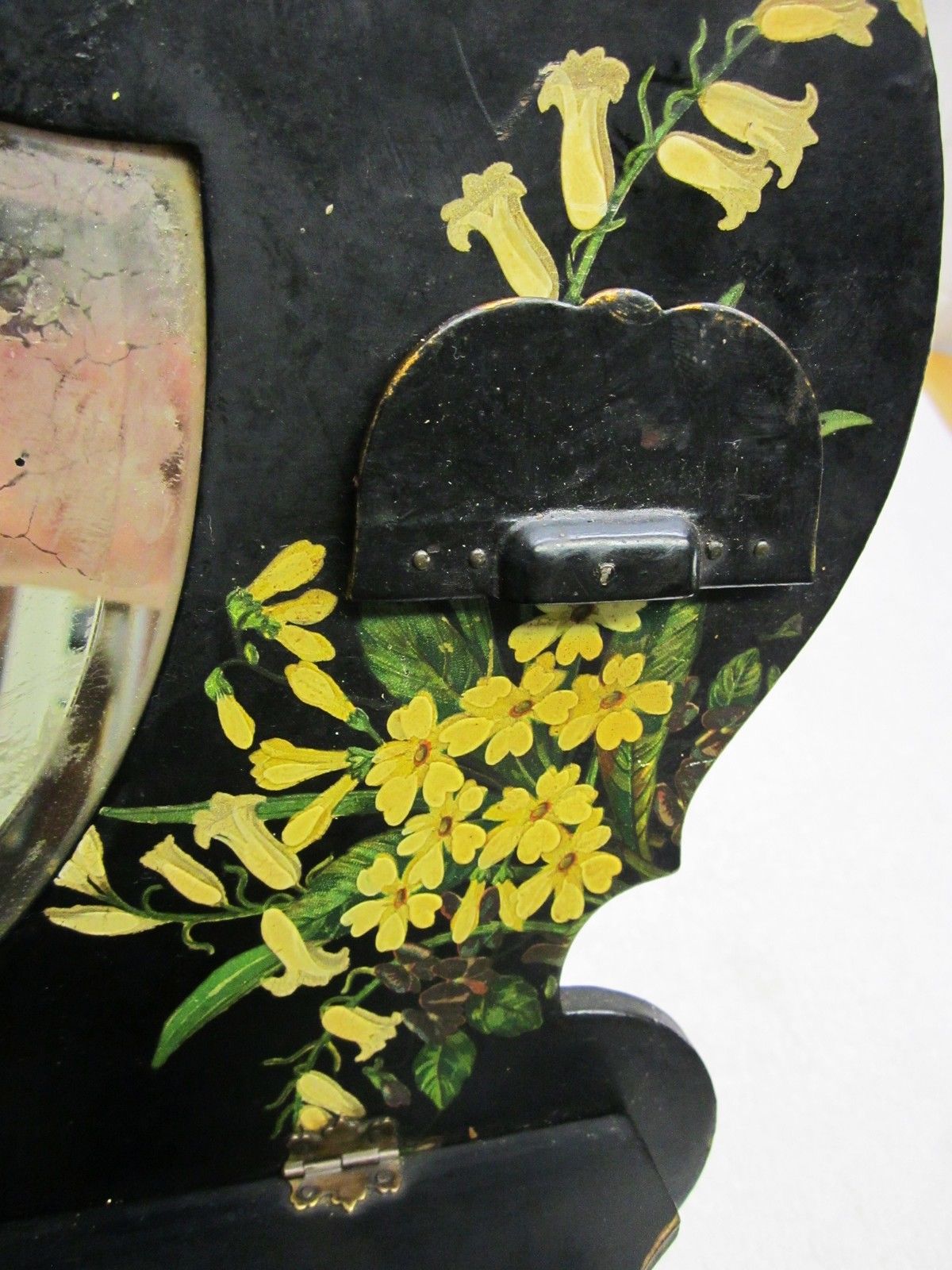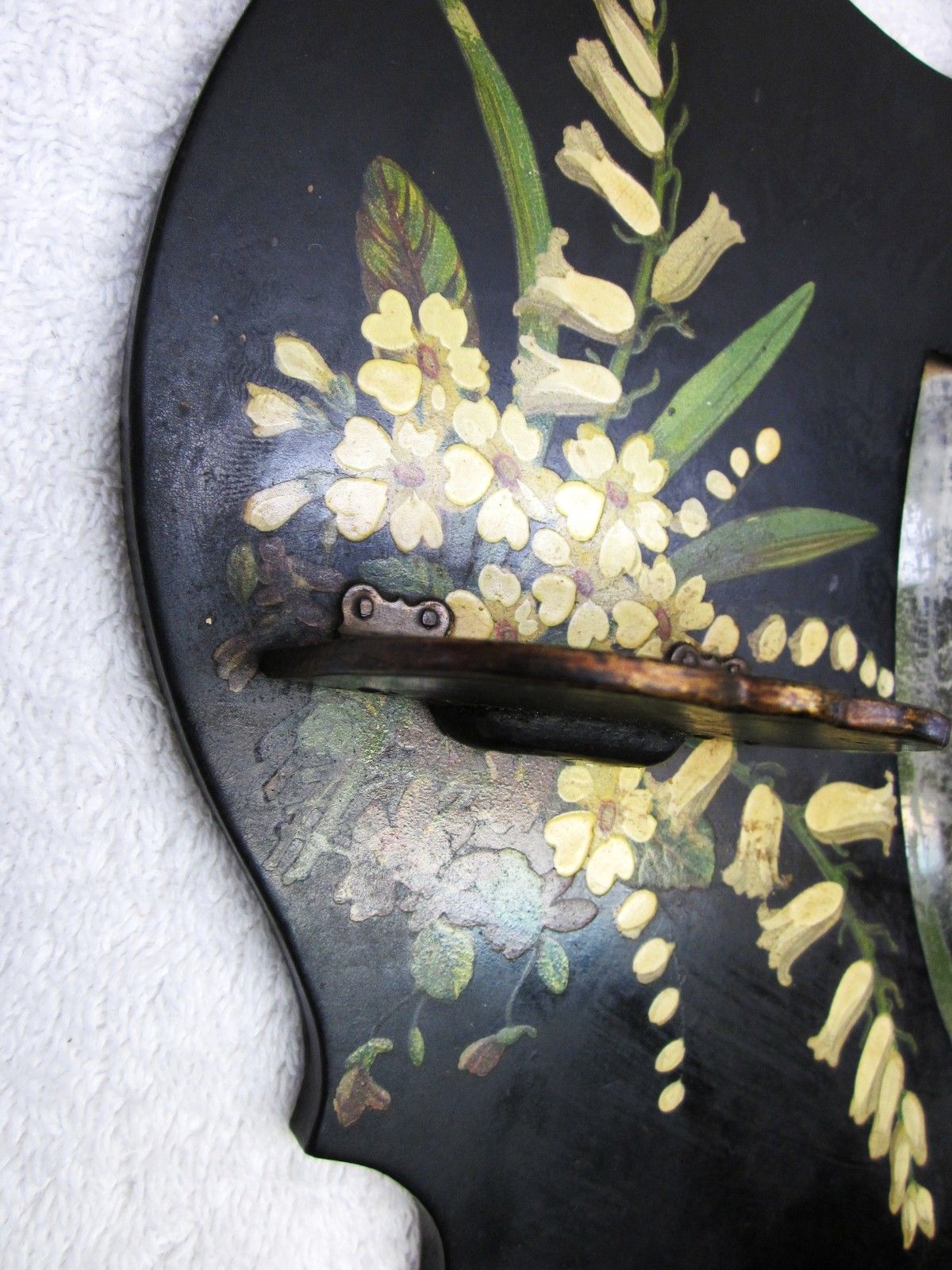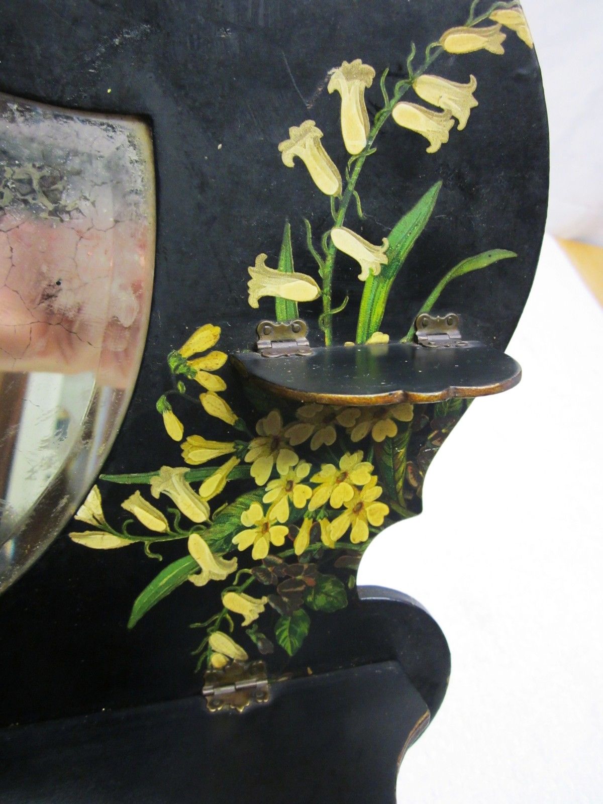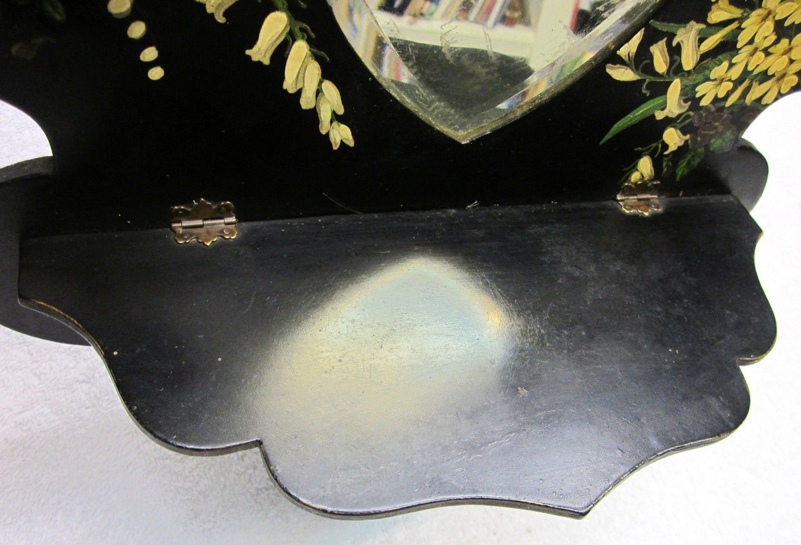 Victorian Antique Hall Mirror Collapsible Shelf's Old Original Hand Painted Frame