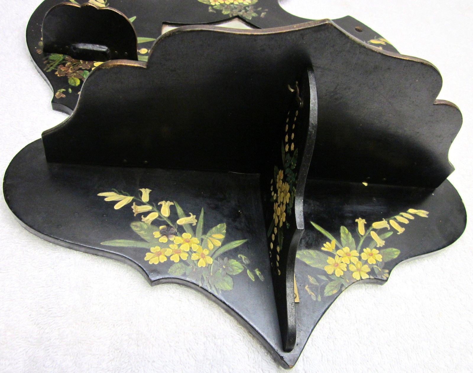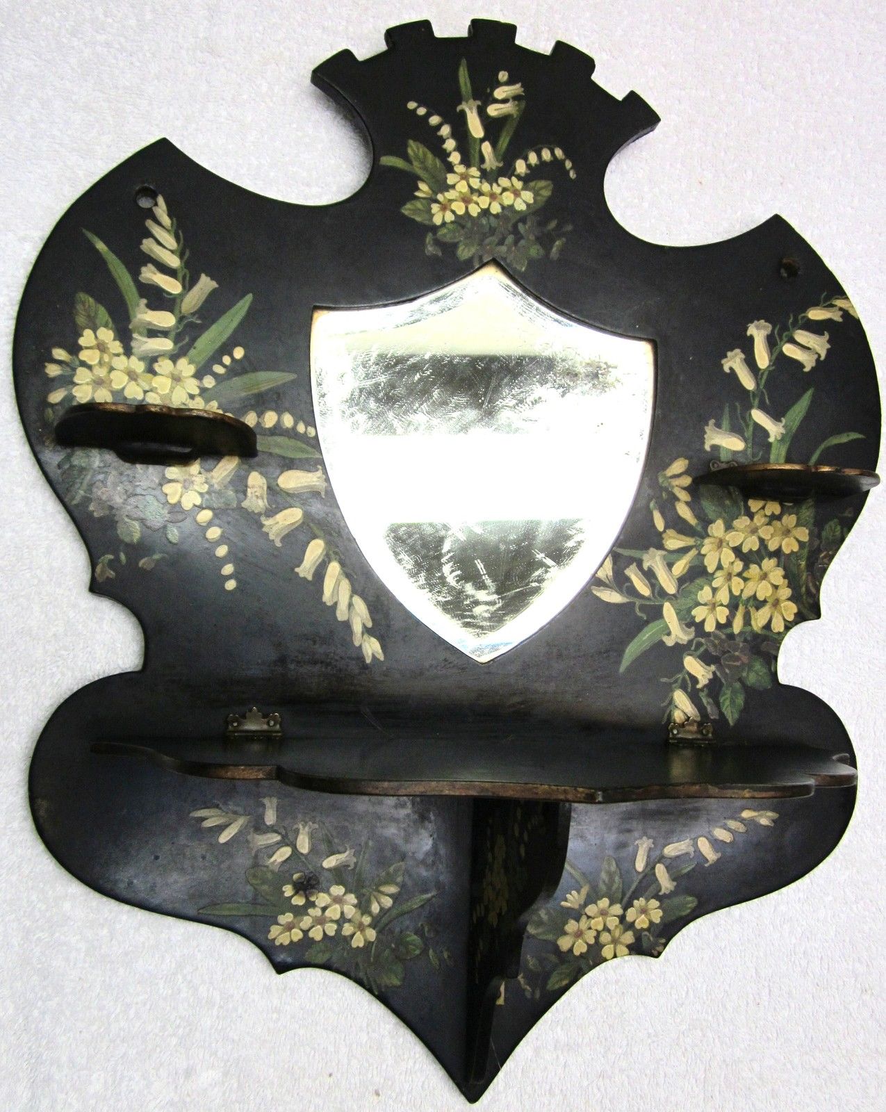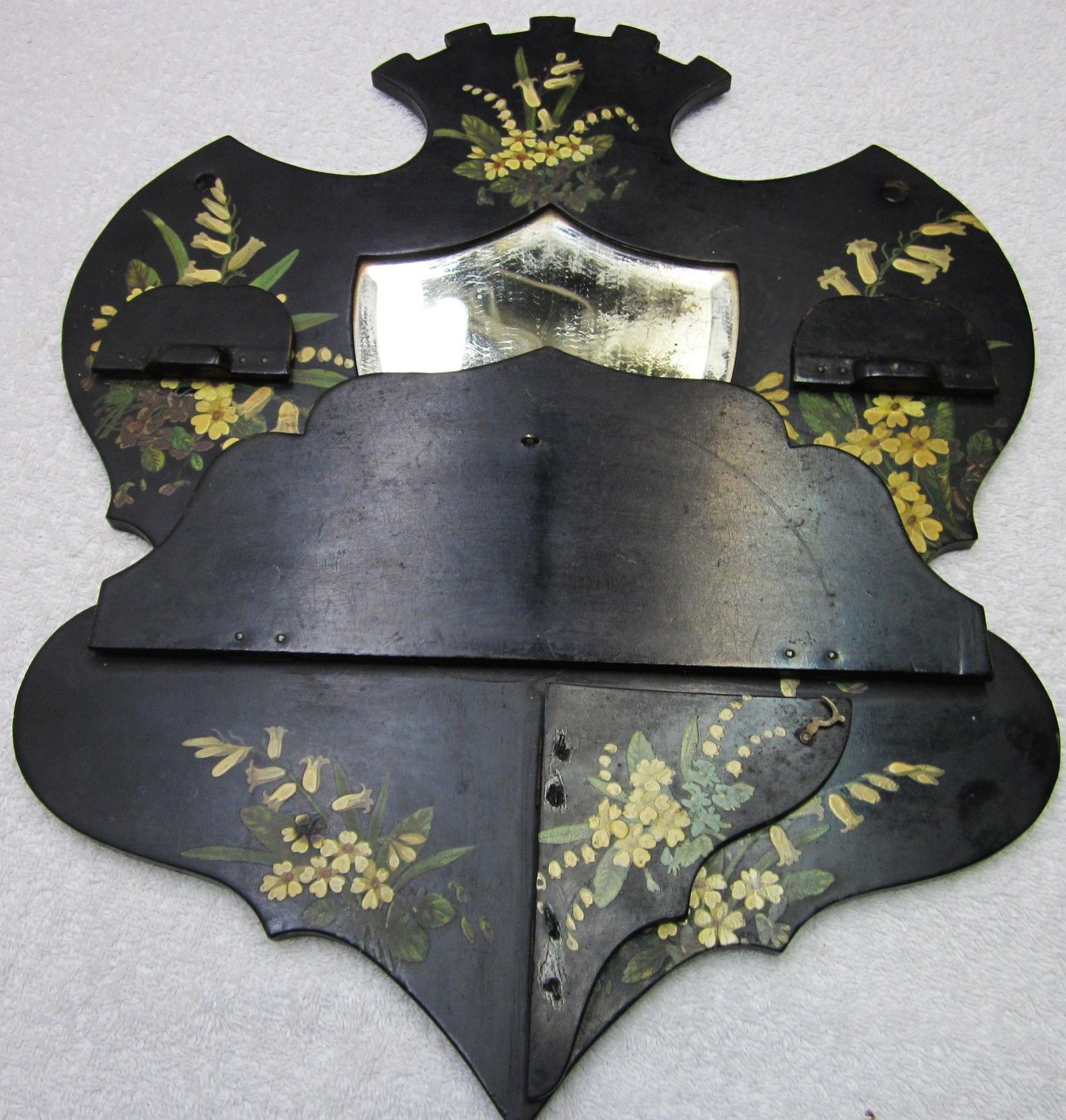 Victorian Antique Hall Mirror Collapsible Shelfs Old Original Hand Painted Frame