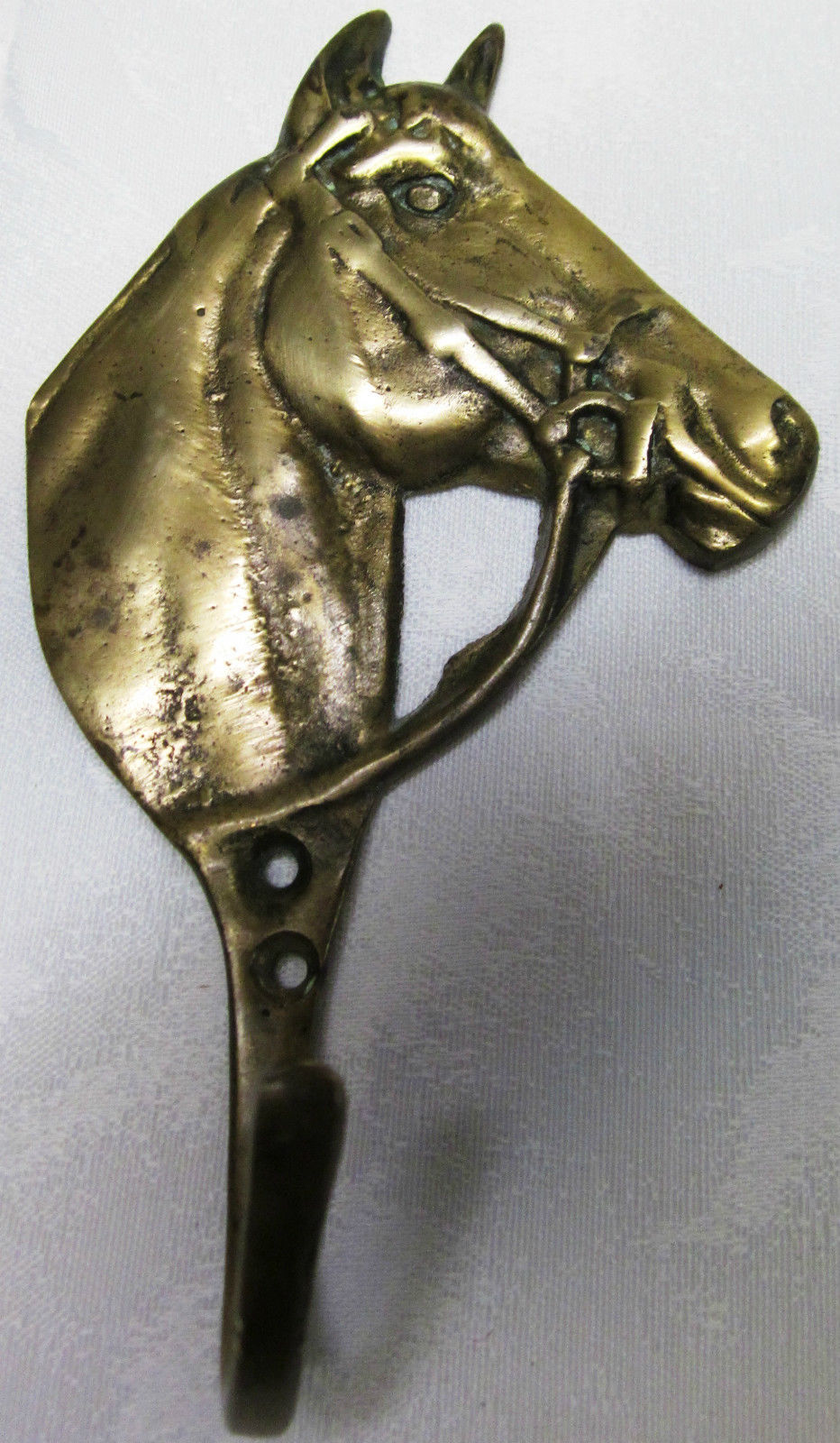 Este impresionante bronce pesado caballo cabeza gancho está en excelentes condiciones.