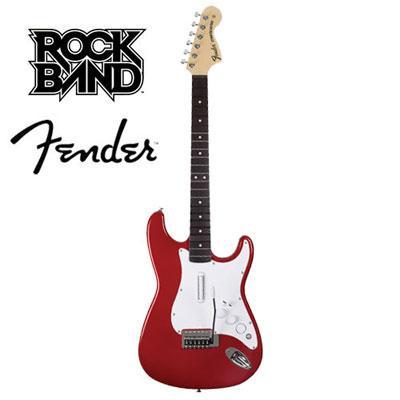 Official Rock Band Wireless Fender Stratocaster Replica for Xbox 360 - Candy Apple Red Metallic Finish... Mad Catz' highly coveted Wireless Fender Wooden Stratocaster Replica is the guitar to own for any Rock Band enthusiast who wants to rock in style with unparalleled performance plus the added freedom of wireless connectivity. This is no cheap plastic toy, wood from the same stock as a real Fender guitar is what this axe is made of. The high gloss paint finish will make your guitar shine and will be the envy of all your friends.