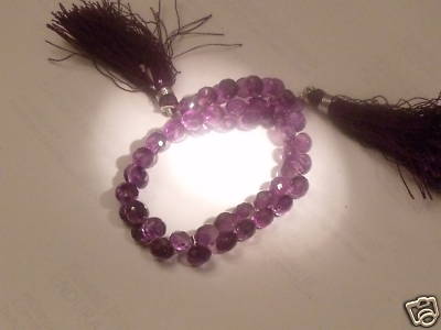 This is a gorgeous Amethyst Gem bead strand. These beads are stunning in a iridescent violet with magenta as its secondary color. These are Faceted Natural Gemstones. These Flawless Amethyst strands are some of the nicest gemstone beads that I have seen in a long time. Anyone who loves purple will get very excited with these strands . This is definitely one strand that will have people "Gawking at your Gems". This is an 8" Strand of Natural FACETED Precious Onion shaped Amethyst 8.75mm X 7mm X 7.mm size which are very close in size throughout entire strand. NOT GRADUATED. Sizes are approximate but measured with a Presidium Gem Gauge. I purchased this as a 8" Strand and selling it to you as a 8" Strand. I pride myself in giving you the best that is out there for a fair and reasonable price.